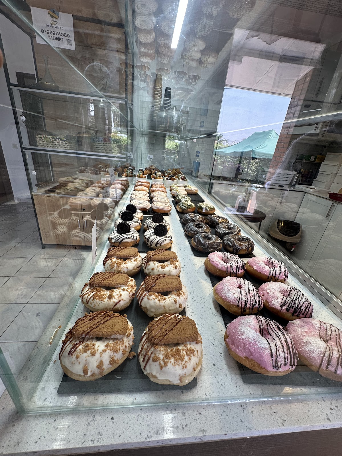 Donut World sits quietly into Kigali’s café scene as a small bakery-café known for its fresh donuts, a breakfast and lunch menu, and simple coffee and juice offerings. Customers highlight a wide rotating selection of flavors — custard, pistachio, Oreo — described as fluffy and not overly sweet, with items priced around $2 each. Drinks include smoothies, fresh juices and an Ethiopian-style macchiato that several visitors singled out; the shop also offers ice cream and a grab-and-go option for people who want to stroll the nearby Vision 1 neighborhood.
