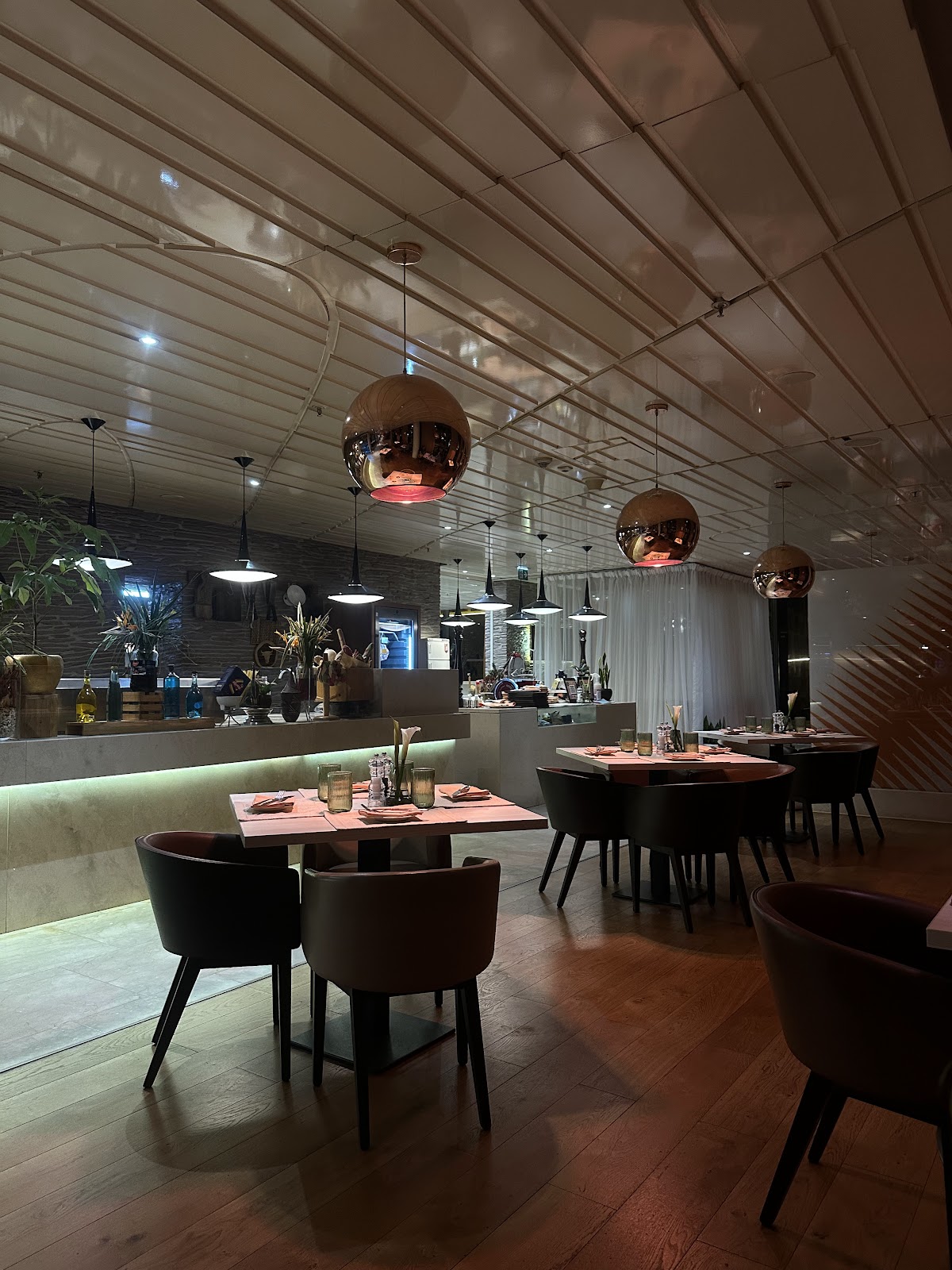 Filini sits beneath the Convention Centre near the Radisson Blu and comes across as an Italian-focused restaurant with a mix of hotel-convenient practicality and a slightly upscale feel. Customers highlight a menu that leans Italian — pizzas (including a noted BBQ/sweet-and-savory signature pie), lasagna, pasta and salads — alongside grilled items such as a South African steak and lamb chops. Desserts and shakes also come up often, with cakes and milkshakes singled out, so the beverage and sweet options feel like part of the draw as much as the mains.