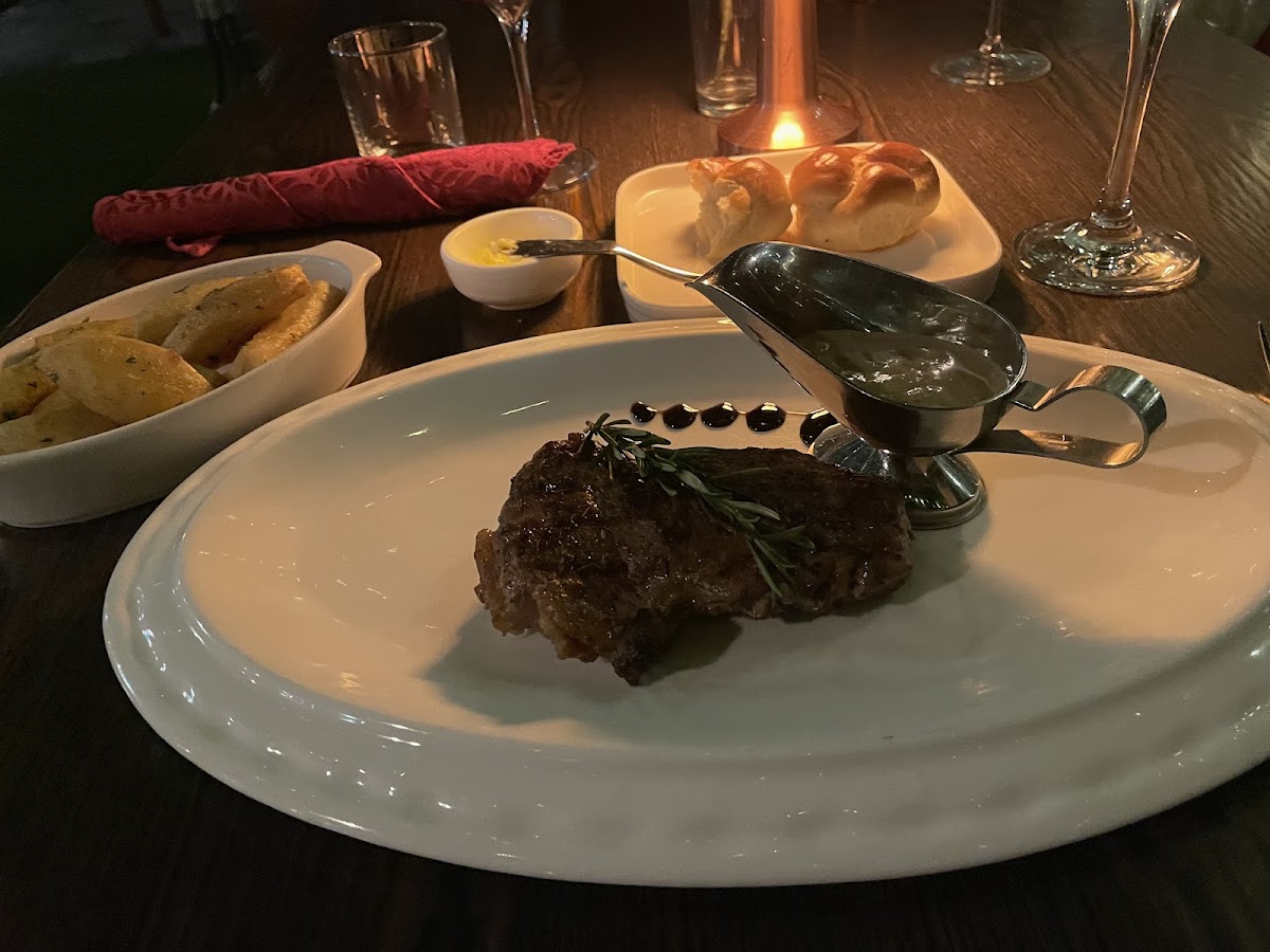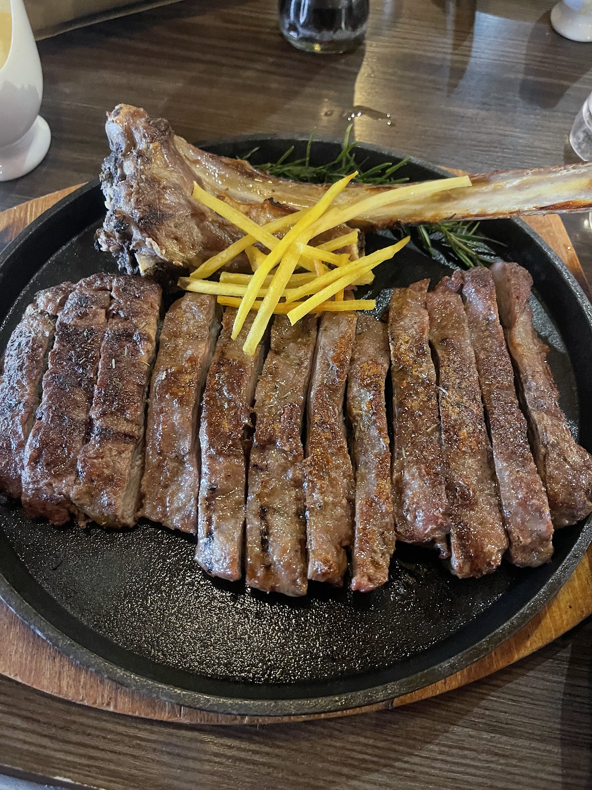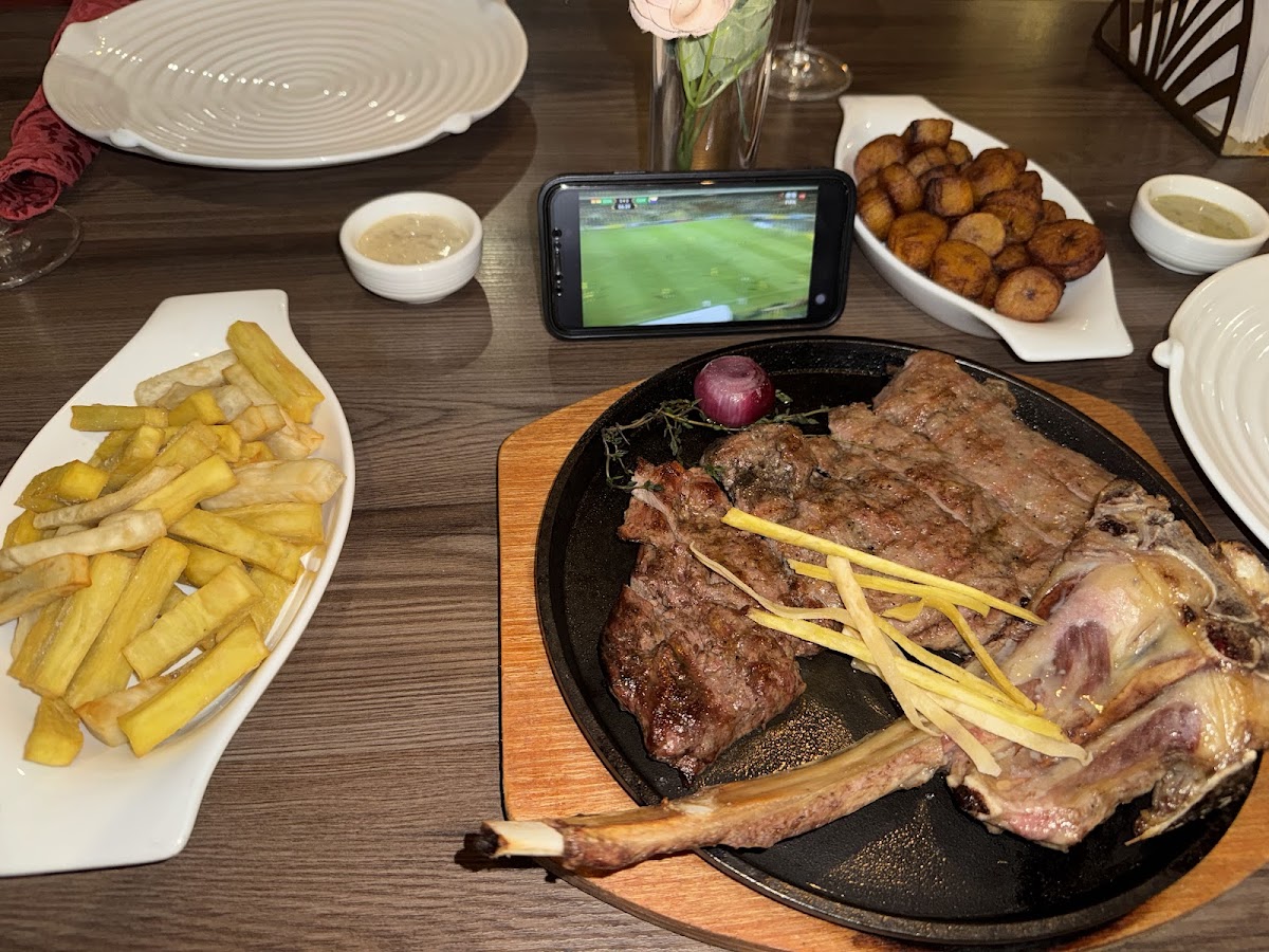 Inka Steakhouse presents itself as a focused steak restaurant in Kigali where large, well-seasoned cuts take center stage. Customers consistently mention tomahawk, T-bone and ribeye steaks that are generous in portion — one tomahawk was described as enough for two or more — and sides that come in substantial quantities. Small touches like fried oyster mushrooms, a variety of sauces, and a build-your-own gin and tonic option appear regularly on bills; one visitor noted a watery fruit cocktail as an exception among otherwise satisfying drinks.