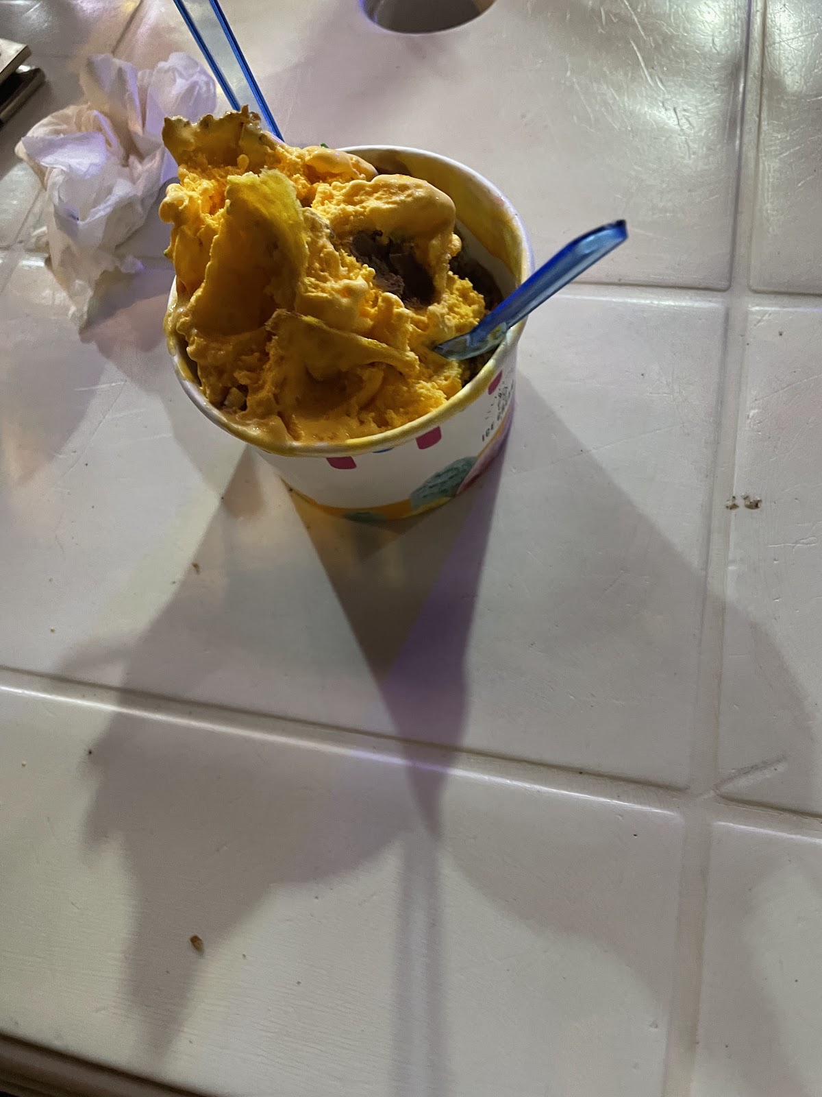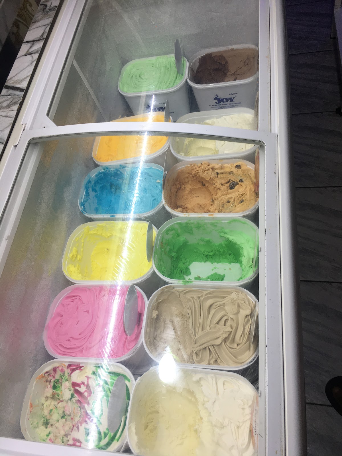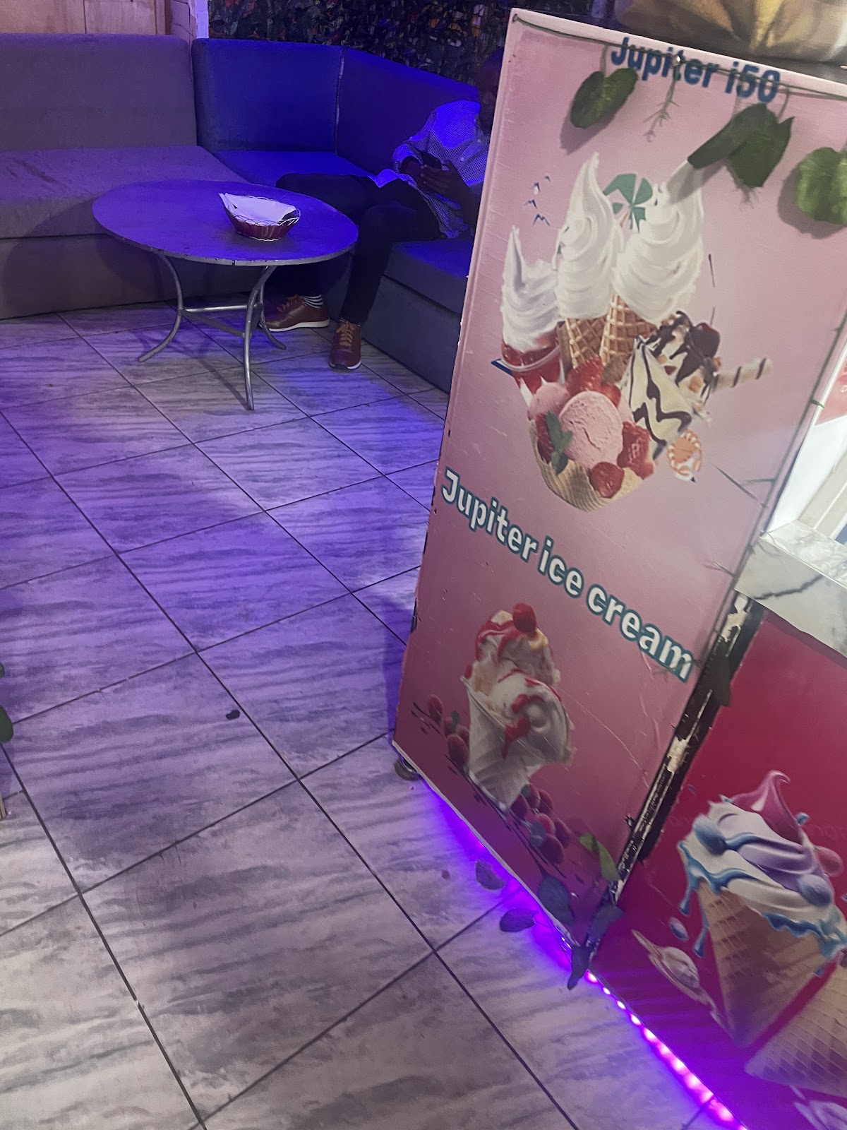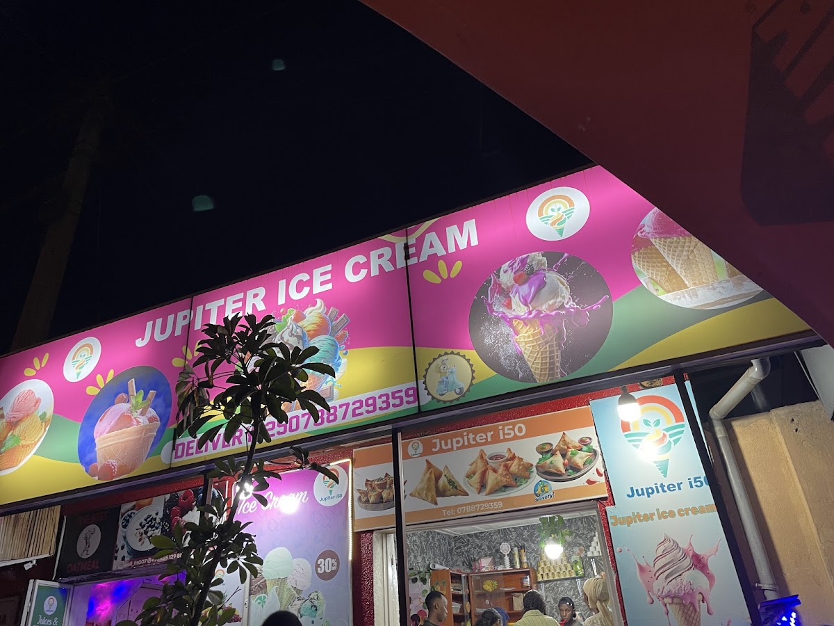 Jupiter Ice Cream in Kigali is a casual, dessert-focused spot tucked into the city's famous food no-car zone beside Macoco restaurant. Customers consistently note the value: a single scoop costs 1,000 Rwandan francs and is served in a small biscuit cone with various toppings. The menu centers on ice cream flavors — mango (described as very smooth but leaning artificial), chocolate (likened to dark chocolate and not overly sweet), and a nutty flavor that comes with raisins and other mix-ins that several reviewers praised — plus a popular strawberry-and-bubble-gum combination. The shop also offers fruit salad, and one reviewer mentioned pizza is available, though that item drew strong criticism for being cold, seemingly pre-cooked, topped with cheap cheddar and ham, and priced higher than expected.