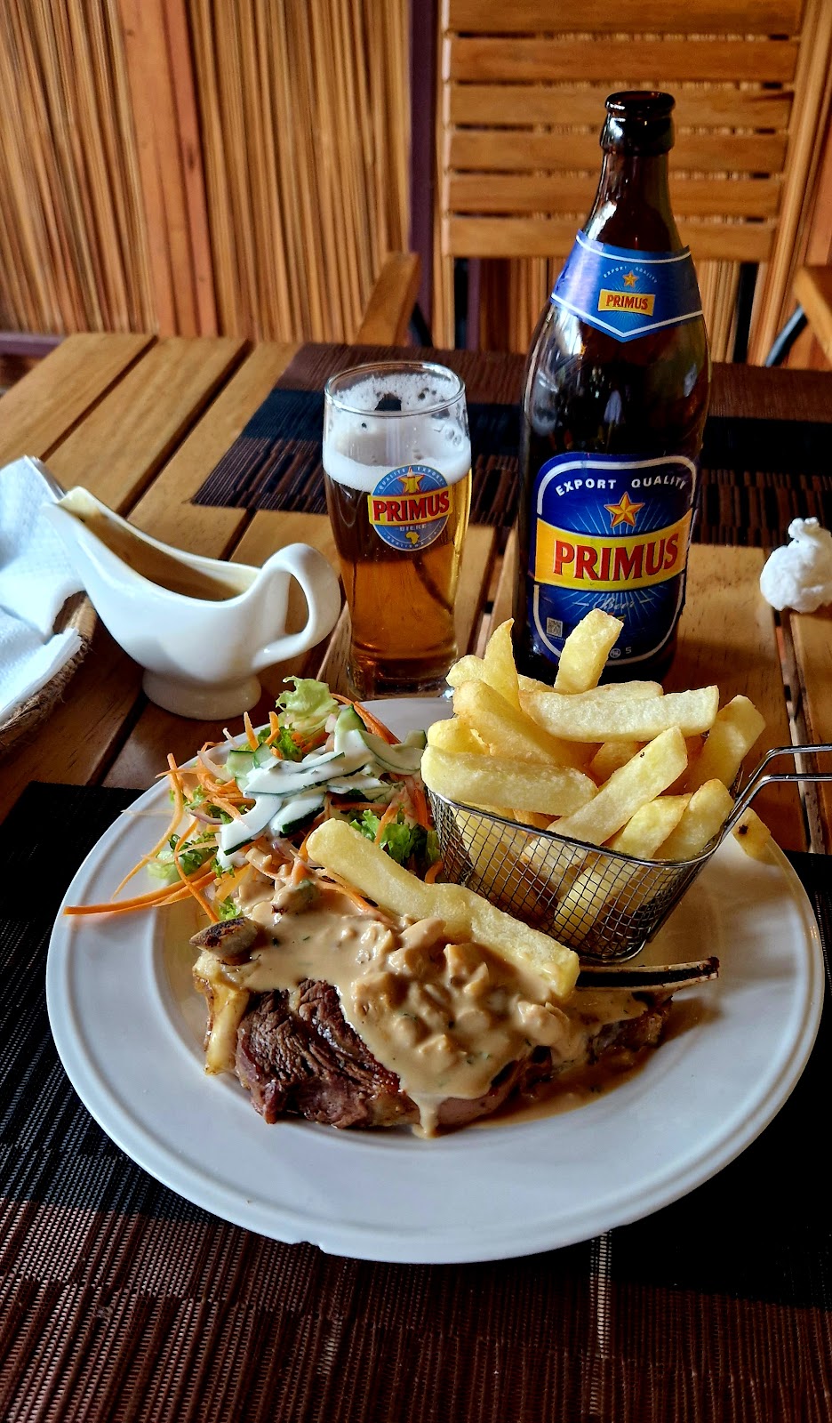 La Galette presents itself as a mixed-use spot that combines a coffee shop, bakery, restaurant and grocery/butchery under one roof. Reviewers note a strong emphasis on baked goods and meats — fresh, crispy bread, an array of pastries, and an impressive butcher counter with pork and various sausages — alongside brewed coffee and a menu that even includes European items like a German schnitzel. While some guests praised the freshness of bread and meat and one reviewer called it a "hidden gem," others reported specific food issues such as sambusa drenched in oil that caused discomfort and a serious contamination incident involving a cockroach found in purchased minced meat.