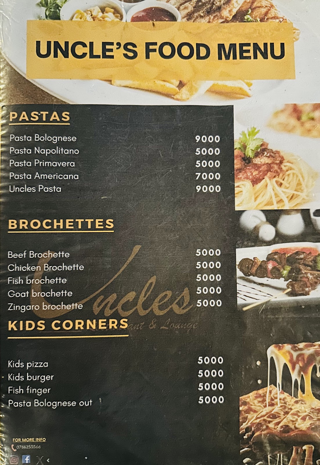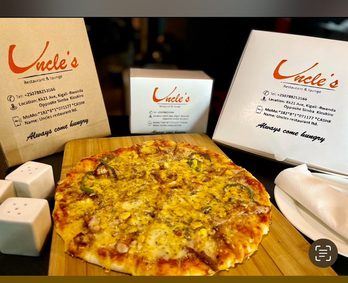 Uncle's Restaurant comes across as a casual, music-forward eatery where comfort food and affordable prices draw regulars. Reviewers mention a wide-ranging menu that includes pizzas (Hawaiian and a margherita-style pie described as "extra cheesy" with tomatoes), burgers and fries, rice dishes sold for about 10K, and a beef stew a customer called "the best beef stew ever tasted." The place also features a pool table and background music, elements that contribute to a lively, laid-back vibe rather than a formal dining environment.